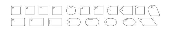 薄膜開關按鍵的各種形狀:鍵體外形與大小的設計,應從整個面板的大小及按鍵數量的多少來考慮。按鍵太小,操作比較費力;按鍵太大,則影響美觀,且不宜按準有效操作區域。另外,如果按鍵凸起,應選擇帶圓角的矩形、圓形、橢圓、長圓等外形比較圓滑的形狀;按鍵不凸起時,則可選擇任意形狀,以略大于后部電路觸點為好。在鍵體上設置指示窗,一般情況下,以左上角為好。指示窗的形狀雖可自由設計,但應注意盡量與鍵體的外形輪廓相適應,譬如,帶圓角的鍵體,宜采用圓形指示窗,方角鍵體宜采用方形或長方形指示窗,以增進外觀的協調。在同一面板上各單元內的指示窗位置及形狀應趨于一致。常見鍵體外形與指示窗位置、形狀見下圖